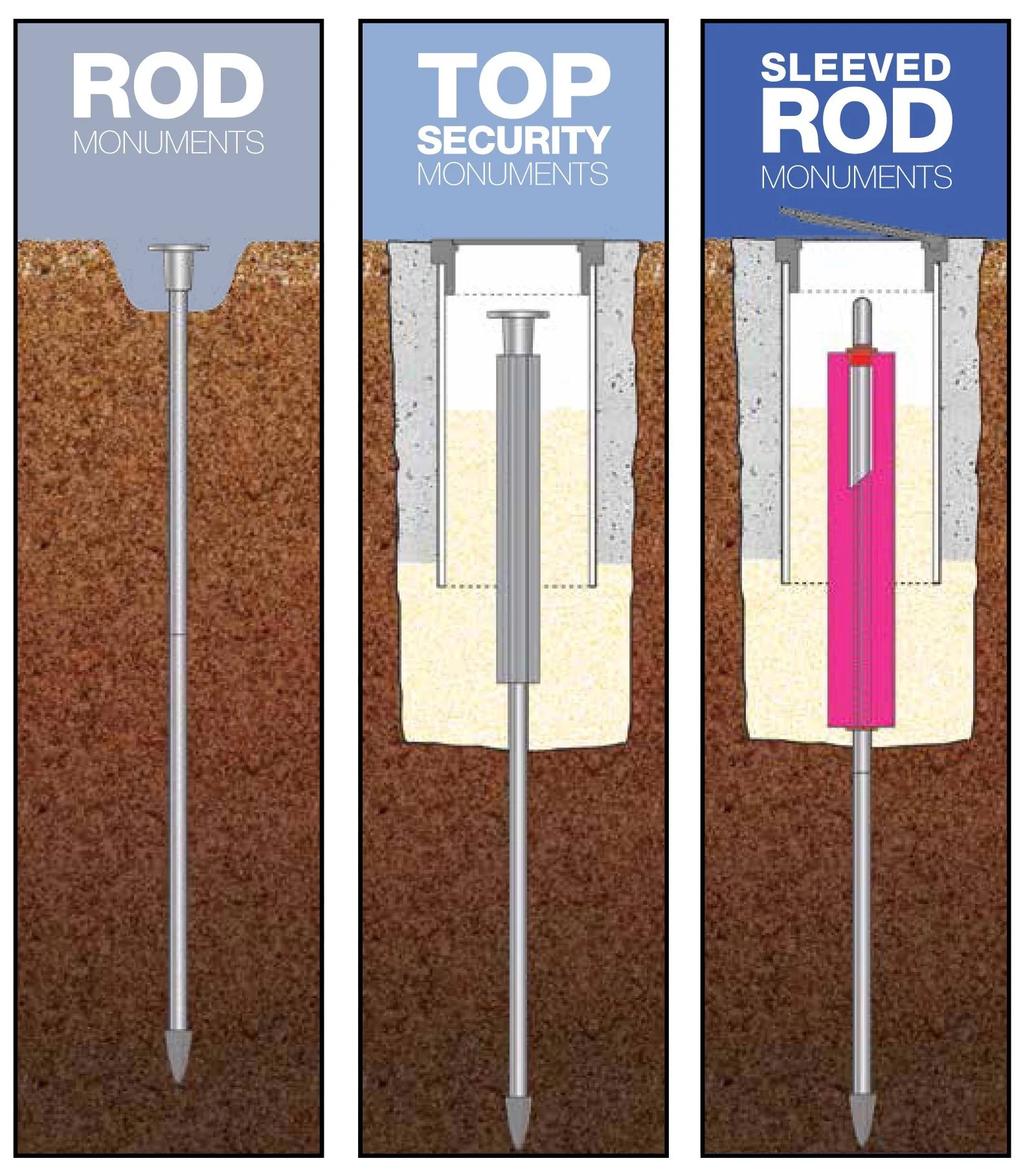 Sleeved Isolation: A PVC sleeve isolates the upper portion of the rod from the soil. When the ground freezes and expands, the soil moves around the rod, but the rod itself remains dead still.